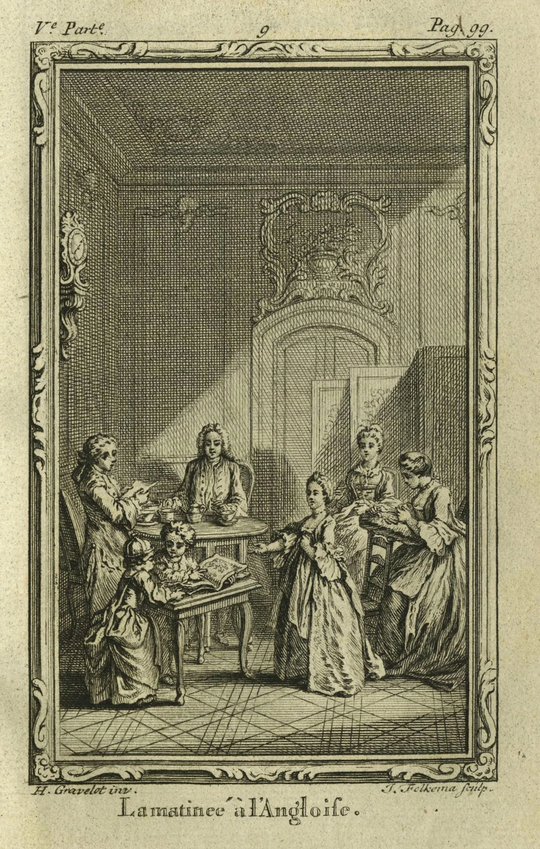 Face à la concurrence qui faisait rage à Paris, Gravelot partit à Londres pour répondre à l’offre du graveur-éditeur Claude Dubosc (1682-1745) qui cherchait un dessinateur pour donner des modèles d’estampes. Installé entre 1732 et 1745 dans la capitale britannique, il se spécialisa durant cette période dans la production de vignettes. En effet, ce champ connaissait alors un intérêt croissant à la suite de l’impulsion des peintres du début du siècle qui affirmèrent la séparation entre le dessinateur et le graveur [2]. Le retour des grandes commandes officielles obligea ces artistes à s’en détourner. Pour répondre à la demande croissante de livres illustrés, les éditeurs se rapprochèrent de dessinateurs pour donner des modèles de vignettes. Ainsi, Gravelot s’engouffra dans cette veine. Sa participation aux publications des livres les plus prestigieux permit à son nom de se propager et d’être régulièrement recommandé pour travailler au service de l’édition de luxe.