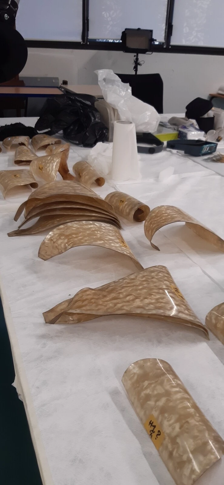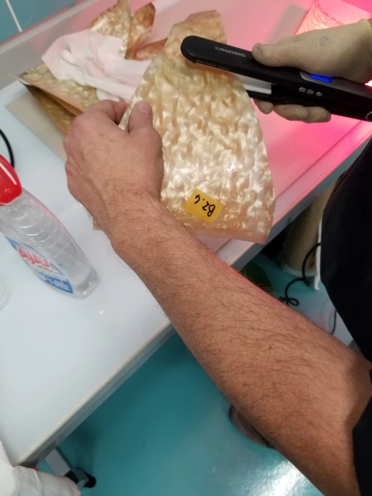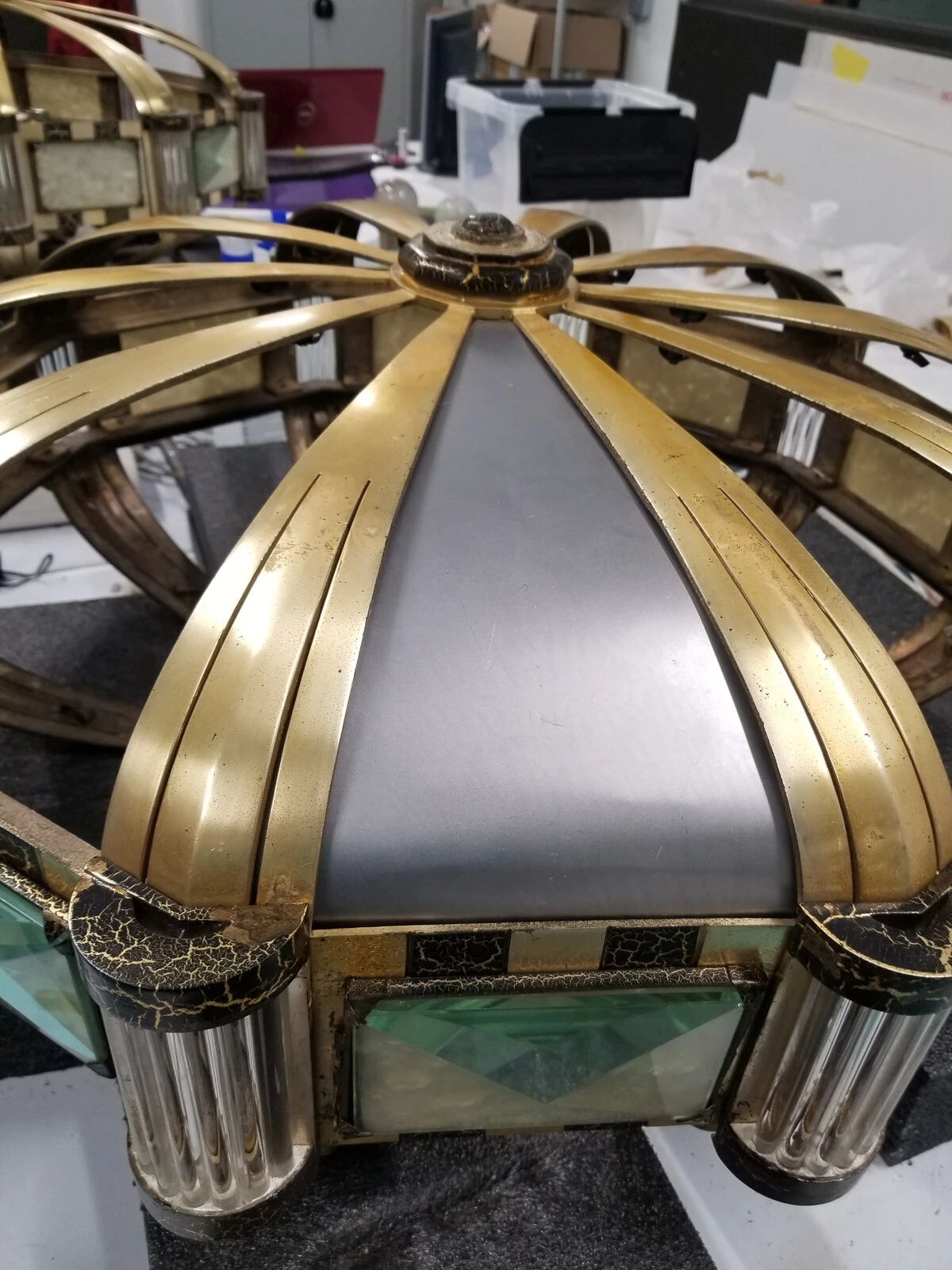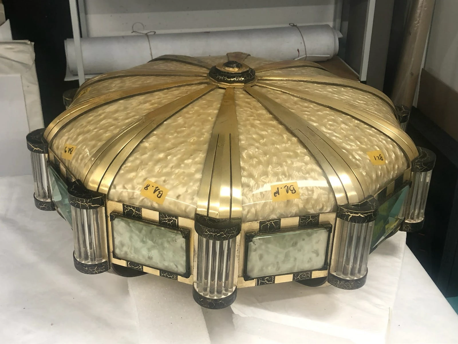 Remise en forme des parties en nacrolaque d’un lustre de la dation Fels © Olivier Omnès 2022
