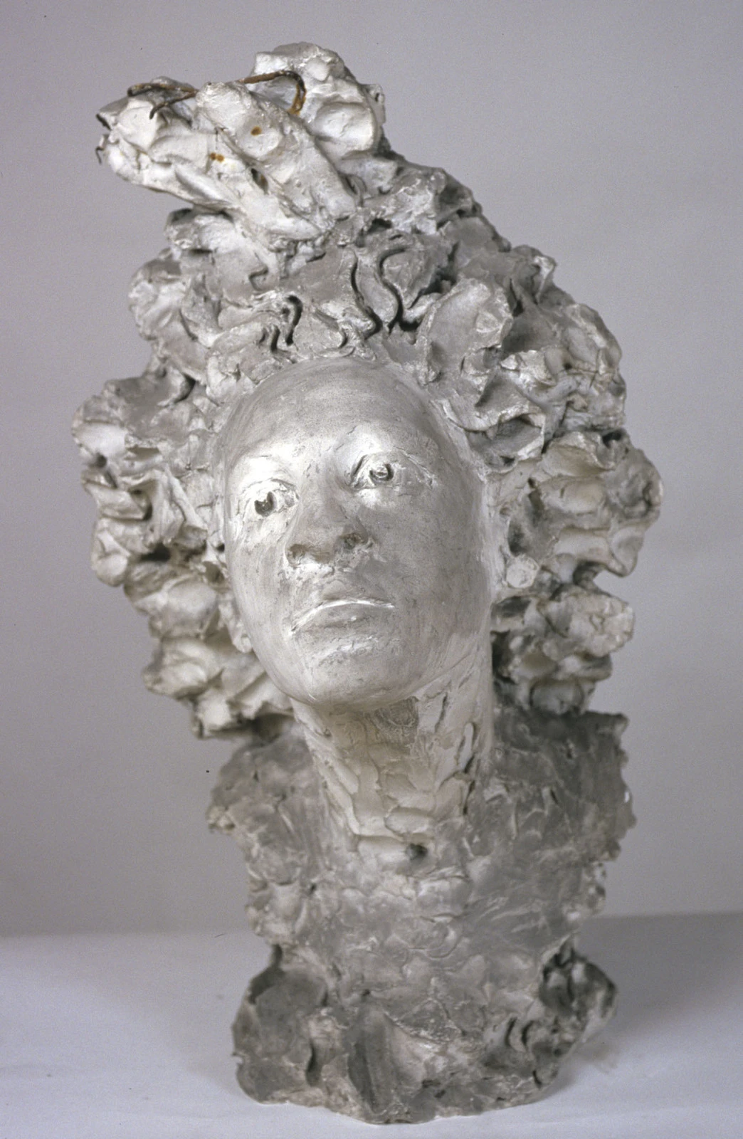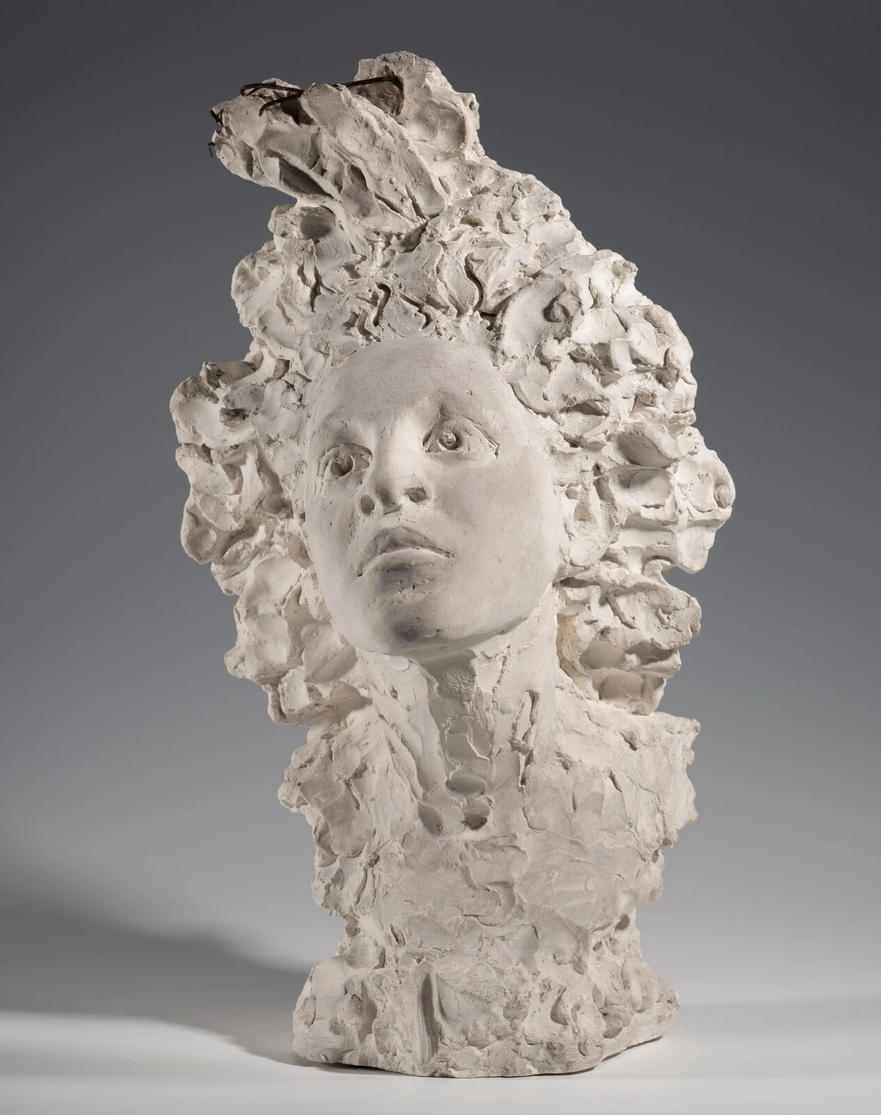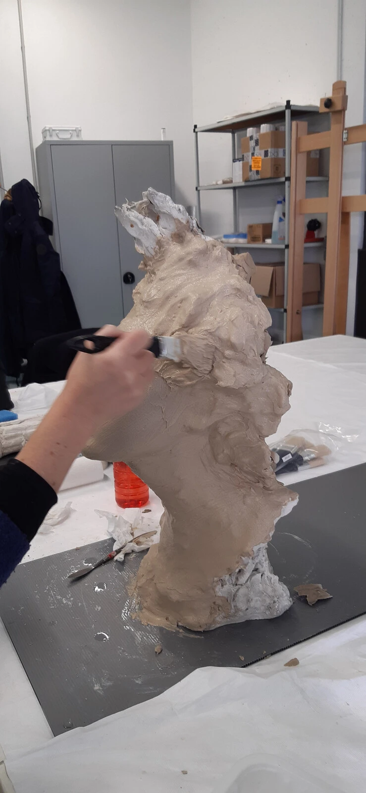 Nettoyage d’un plâtre de René de Saint-Marceaux, Moulage d’une ébauche, tête d’homme, par application au pinceau d’un gel pelable, groupement Lucie Courtiade. © Musée des Beaux-Arts de Reims, 2021-2023.