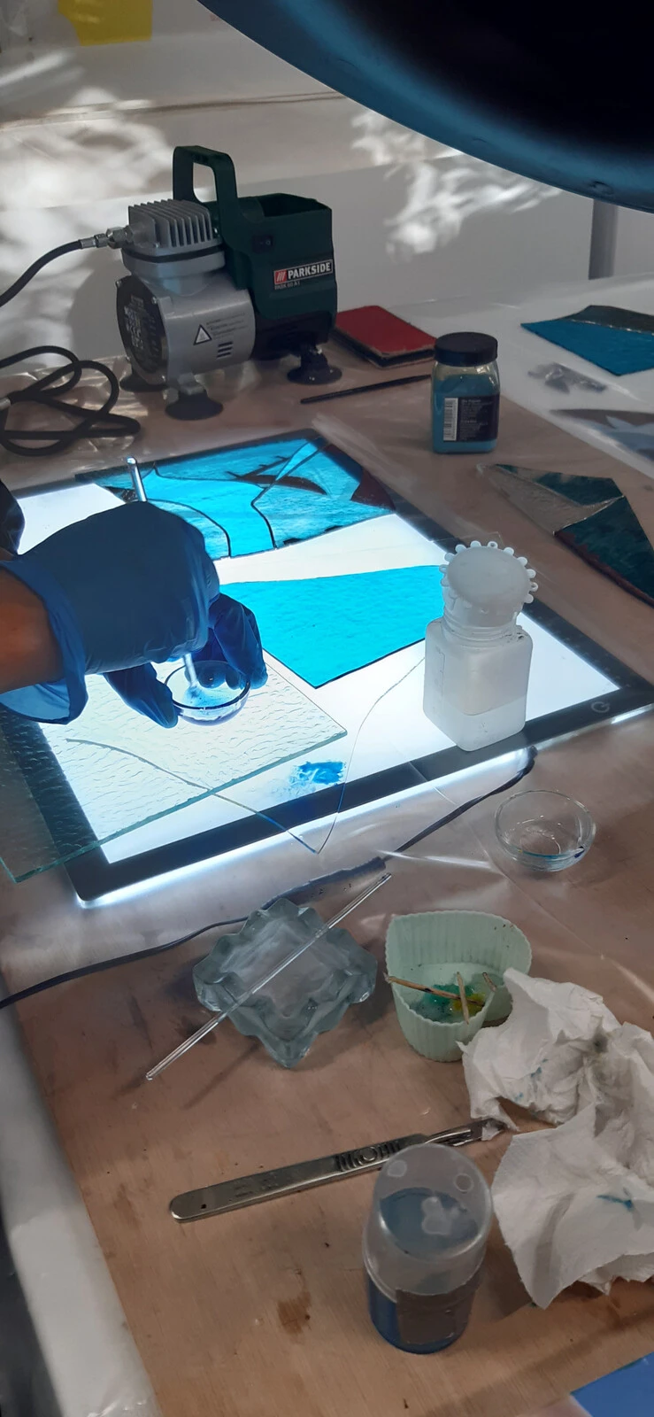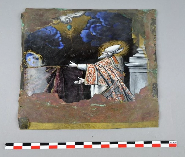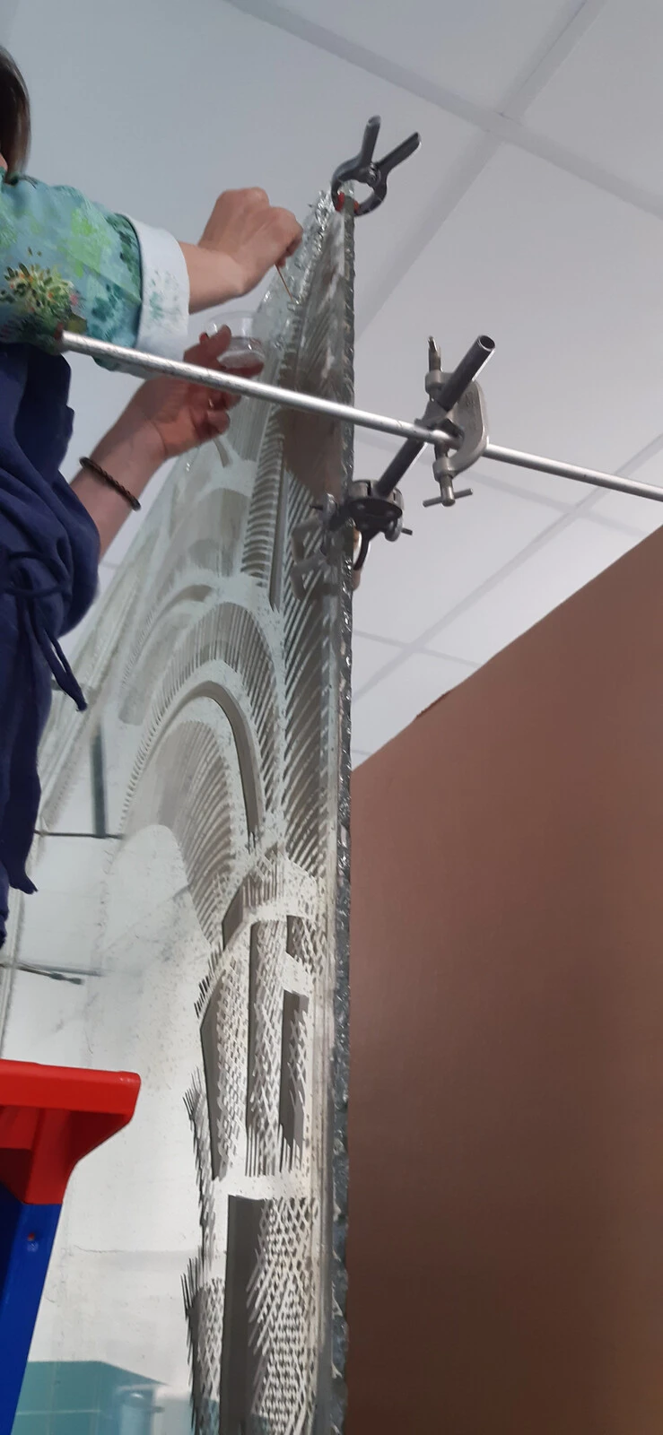 Nettoyage et stabilisation des éléments métalliques corrodés sur un émail de Jacques Laudin. (© Anaïs Braja 2021)