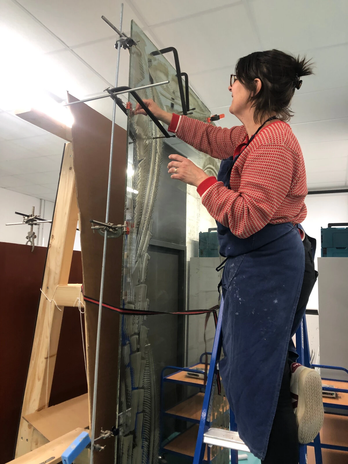 Allégement de vernis en cours pour une œuvre d’Arthur Guéniot Le modèle Léonard Abbruzzeze par le groupement de Bertrand Bedel. © Bertrand Bedel, 2022-2023
