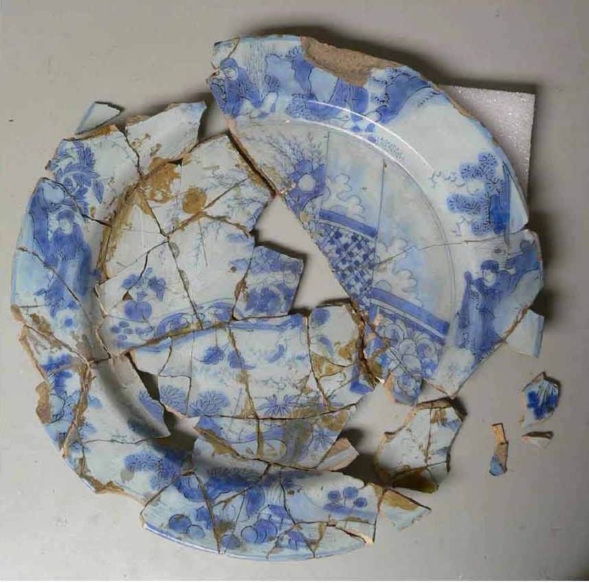 Démontage, collage, comblements sans restitution du décor sur une céramique © Patricia Dupont, 2021