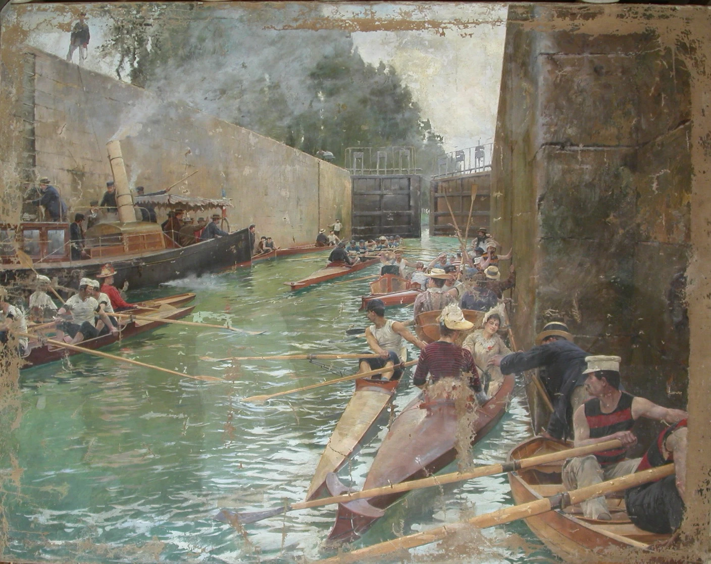 Le degré de retouche est parfois délicat à déterminer comme pour la peinture à la détrempe de François Louis Schmied Le Voyage imaginaire – L’arrivée de la caravelle, carton de tapisserie fortement marqué par des traces d’usage, des découpes dans le cadre du tissage et des mauvaises conditions de stockage. Il faut trouver le bon compromis entre le respect de l’histoire de l’œuvre, sa compréhension globale et son exposition dans un cadre muséal.