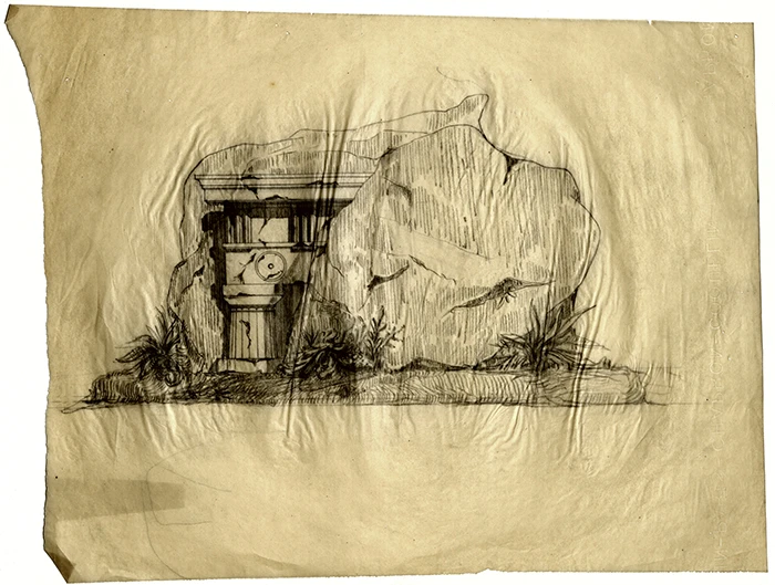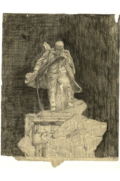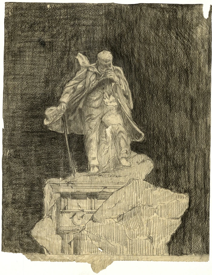 Les Archives d’Ille-et-Vilaine conservent deux dossiers « Victor Lesage » qui contiennent une douzaine de dessins non signés (sont-ils de Boucher, de Lesage ou de son associé, Charles Miltgen ?), dessins qui révèlent l’intention première de l’architecte : faire surgir dans le socle de la statue la partie supérieure d’un temple ou du Panthéon. Victor Hugo serait apparu, tel un dieu, non sur le fronton, mais sur l’entablement du temple.