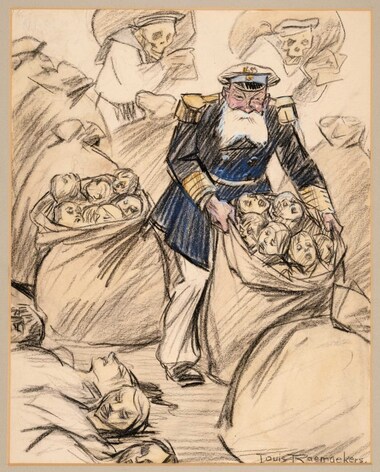 Mais c’est l’iconographie de la Première Guerre mondiale qui fournit le plus de caricatures, notamment celles appartenant à la collection de Julien Lemétais (1870-1959). Transmis à la postérité après achat auprès de ses filles par la ville de Reims pour ses musées, les peintures, dessins et gravures de cette dernière constitue un héritage historique et artistique incroyable pour toutes les générations. Conservées en majorité au musée des Beaux-Arts, mais également au musée Saint-Remi et au musée du Fort de la Pompelle, ces œuvres témoignent de l’engagement des artistes pour dénoncer l’absurdité de la guerre et les responsabilités de ses acteurs. Conçues pour la presse et l’édition au service de l’information mais surtout de la propagande antigermanique, ces caricatures ou fantaisies humoristiques sont aujourd’hui autant de signes pour nous faire sourire, réfléchir et ne pas oublier.