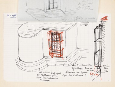Proposition de grille extérieure pour la verrière La Genèse de la chapelle Notre-Dame-de-la-Paix de Reims