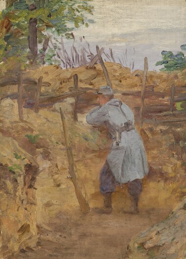 Soldat de garde dans une tranchée