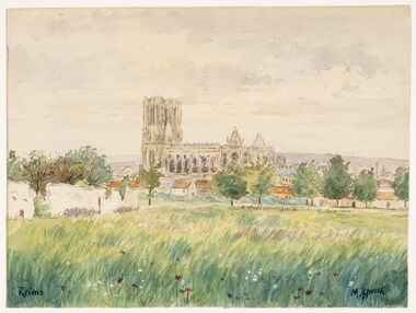 Vue de Reims avec la cathédrale en ruines après la Grande Guerre