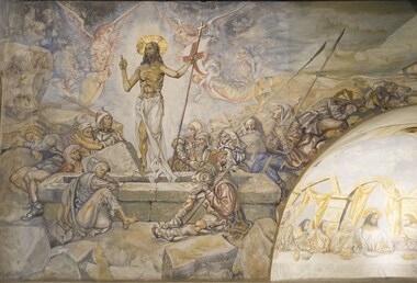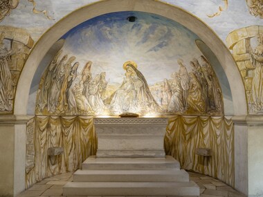 Testament artistique de l’artiste franco-japonais Léonard Tsuguharu Foujita (1886-1968), la chapelle Notre-Dame-de-la-Paix a été conçue et entièrement décorée par lui entre 1965 et 1966. Le peintre fantasque de l’école de Paris, qui s’est converti au christianisme à Reims en 1959, y déploie son univers très personnel, mêlant sa culture japonaise aux références de la Renaissance italienne. Bénie en 1966, la chapelle est étroitement liée au musée des Beaux-Arts qui conserve une importante collection de l’artiste. Léonard Foujita et sa dernière épouse Kimiyo y sont inhumés.