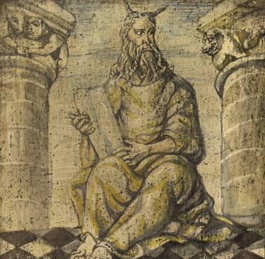 La porte de la sacristie est divisée en 16 panneaux de bois décorés de scènes de l’Histoire Sainte ou de vies de saints.
