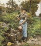Pour ce pastel, il reprend en grande partie « La Petite fontaine », peinture datant de 1876 (collection particulière). Lhermitte va régulièrement représenter ce lieu. Ainsi, nous le retrouvons avec Hortense et son époux le jardinier Louis dans « Avril », autre pastel de la collection Vasnier (voir inv. 907.19.330). Cette œuvre exécutée en octobre 1885 a été achetée en 1886 par Henry Vasnier directement à l’artiste pour la somme de 1 200 francs.