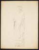 Figure biblique, en pied, de face, portant de larges draperies, sans main, il a les yeux fermés et est monté sur un chapiteau. Au verso, esquisse d’un ange monté sur chapiteau.