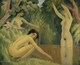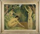 - scène groupe femme nu bain cours d'eau arbre roseau fleur végétation