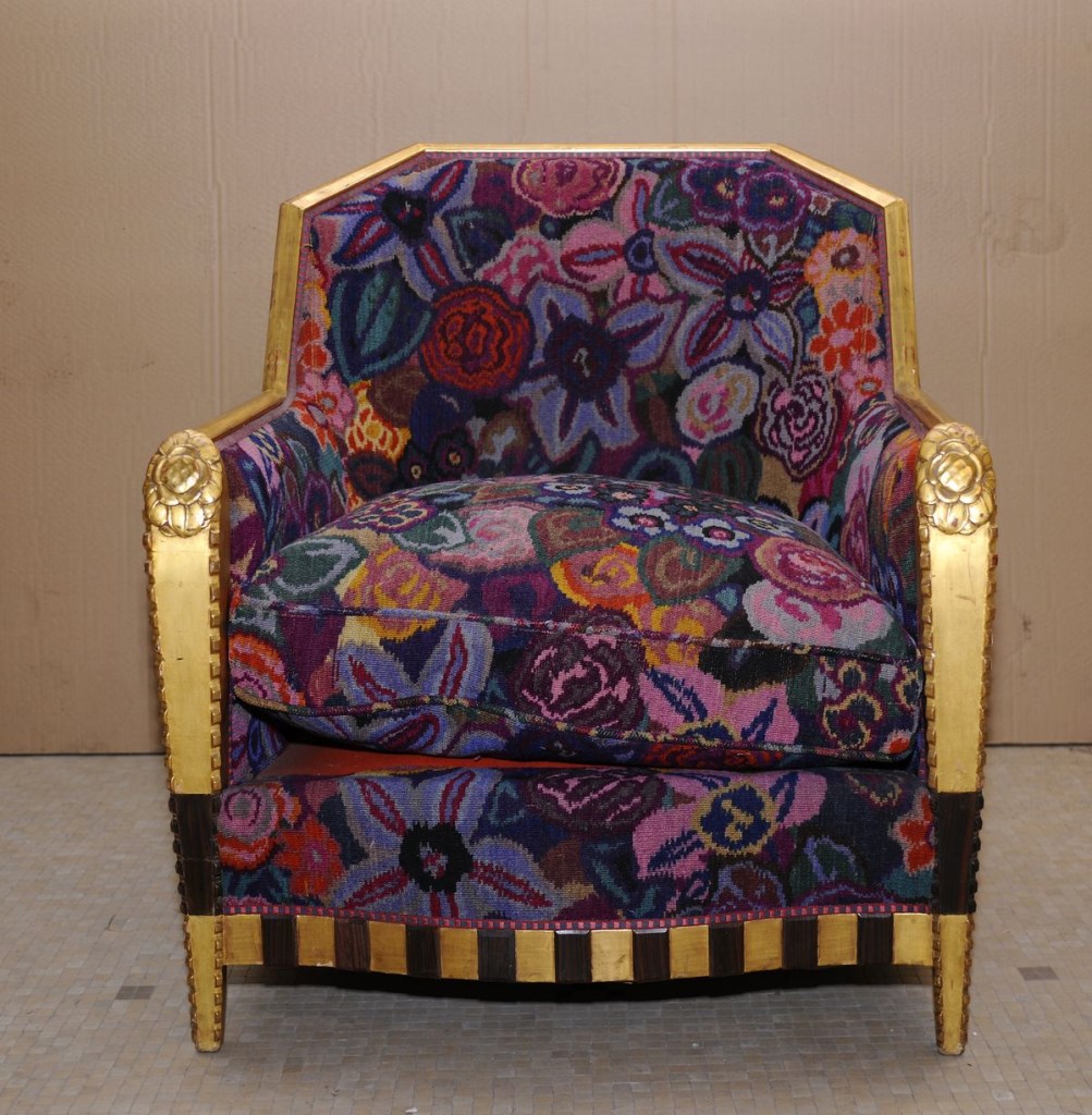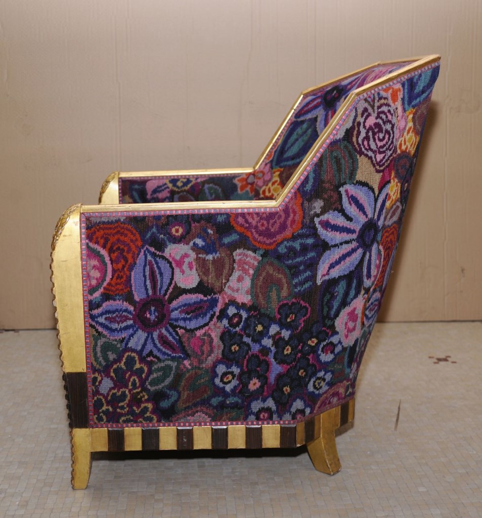- Bois doré à incrustations ébène de macassar, tapisserie à l'aiguille