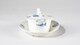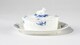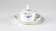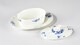 Porcelaine tendre au décor bleu de grand feuH x L x P en cm : 9,6 x 20,8 x 15,5 (ensemble)