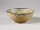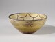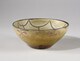 Bol à assise annulaire, corps tronconique puis cylindrique ; dans le fond décor incisé représentant un chat ; sur la panse motif d’étoile ; striures sur la base.