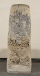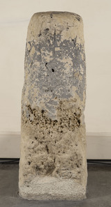 Borne de forme cylindrique présentant les emblèmes de l’abbaye Saint-Naicaise : du côté gauche, deux crosses avec deux lettres et du côté droit, une croix à double traverse.