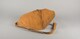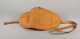 Bouée de natation ventrale en textile orange. Elle se compose d’une partie centrale de forme ovalaire et de deux attaches sur les côtés, l’une d’elle présentant une boucle en alliage ferreux. Au-dessus de la partie centrale, un trou permet de gonfler la bouée.