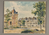 Aquarelle, fusain et rehauts de gouache blanche sur papier contrecollé sur papier brunFeuille H x L en cm : 31 x 40,1