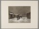 Vue sous la neige des baraques d’un camp de prisonniers, de part et d’autre d’une voie principale ; personnages au centre.