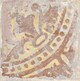 Carreau blanc et marron, à frise demi-circulaire avec points, décor floral sous cette frise.