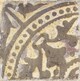 Carreau blanc et marron, à frise demi-circulaire avec points, décor floral sous cette frise.