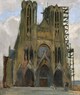 Procession sur le parvis de la cathédrale de Reims avec vue sur le massif occidental en reconstruction