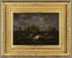Tout est dit dans le titre de cette œuvre : "Ciel d’orage". En lisière de forêt, quelques arbres se détachent sur un ciel nuageux révélant leurs frondaisons dorées. Au premier plan, des rochers et un sentier sablonneux, au bout duquel se dessine une silhouette fantomatique. L’artiste aime travailler hors de son atelier et se confronter aux forces de la nature. Dans ce paysage aux couleurs d’automne le soleil se cache derrière les nuages menaçants.