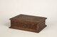 Coffret à assise plate, de forme rectangulaire, à couvercle, à décor en relief et gravé de rinceaux feuillagés, de fleurs stylisées et d’un monogramme central entrelacé.