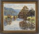 paysage rivière montagne effet de perspective arbre végétation reflet berge champ effet de soleil