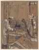 Encre, lavis d’encre et de gouache sur papier coloré collé sur papier fortFeuille H x L en cm : 32,9 x 25,6