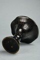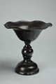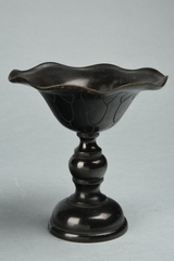 Coupe à offrandes en alliage cuivreux. Elle possède un pied balustre qui se compose d’un nœud en son centre. La vasque présente des bords débordants et dentelés. La coupe est ornée d’un décor géométrique gravé sur l’extérieur de la vasque