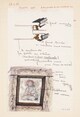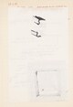 Stylo bille, crayons-feutres et lavis d'encre sur papier filigrané collé au verso d'un papier lignéFeuille H x L en cm : 21 x 13,5