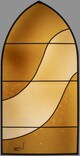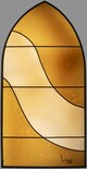 Vitrail ogival figurant une courbe se détachant sur un fond uni.
