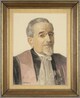 Portrait d’homme en buste, de trois-quarts droits, bésicles sur le nez, à moustache et barbichette, vêtu d’une toge à épitoges roses et portant trois décorations dont la Légion d’honneur.
