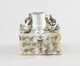 Faïence à décor polychrome de grand feuH x L x P en cm : 14,3 x 14,7 x 23,5 (ensemble)