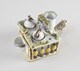 sur une des parties de l'objet, sous le tiroir, étiquette rectangulaire, au crayon-feutre bleu