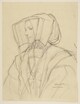 - Portrait, jeune femme en costume de religieuse de l’ordre des Trinitaires, de trois-quarts, la tête de profil gauche coiffée d’une cornette.