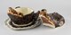 Faïence en terre de Lorraine à décor polychrome de grand feuH x L x P en cm : 35,6 x 39,1 x 49,5 (ensemble)