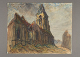 - vue d'architecture église clocher rue village la guerre