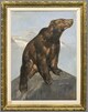 - représentation animalière ours brun fond de paysage effet de perspective montagne neige reflet
