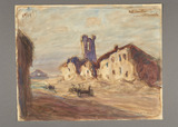 - vue d'architecture village rue maison église ruines destruction rue charrette la guerre