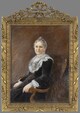 - portrait à mi-corps assis fauteuil robe dentelle bijou de profil femme profession intellectuelle palmes académiques