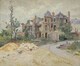 Dans une manière impressionniste à la touche épaisse et vibrante, Lepage va devenir un témoin privilégié du chantier permanent qui va transformer la ville. Motifs uniques ou vues sérielles rendent compte successivement des destructions, des déblaiements puis des aménagements qui remodèlent édifices, artères et quartiers. Les décombres font place aux baraques provisoires peuplées de silhouettes esquissées, virgules de matière vivante. [M. Julien, 2025]