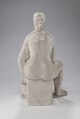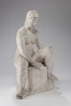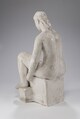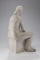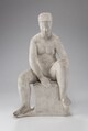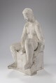 Femme nue assise sur socle rectangulaire, les jambes légèrement écartées celle de droite remontée, le bras gauche entre les jambes.