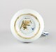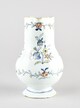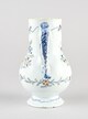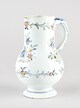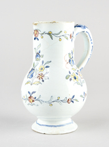 Pichet à pied tronconique évasé, panse globulaire, haut col cylindrique, lèvre arrondie dans laquelle a été ménagé un verseur, anse verticale accrochée sur la panse et le col , décor sur le pied consistant en un liseré, sur la panse registre central délimité en haut et bas par une frise végétale orné de tiges florales, sur l’anse spirales juxtaposées ; sur l’anse, cavité ovale destinée à accueillir la charnière métallique d’un couvercle, tous deux manquants.
