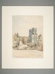 Angle de la place du Marché en ruines, avec, en arrière-plan, le flanc nord et le revers des tours de la cathédrale.
