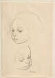 Deux études de tête de fillette, en haut, de trois-quarts gauche, les yeux légèrement baissés, les cheveux ondulés, en bas, de trois-quarts droit, les yeux clos.