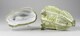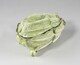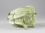 Pot à oille en forme de salade (scarole) en camaïeu vert muni de son couvercle.