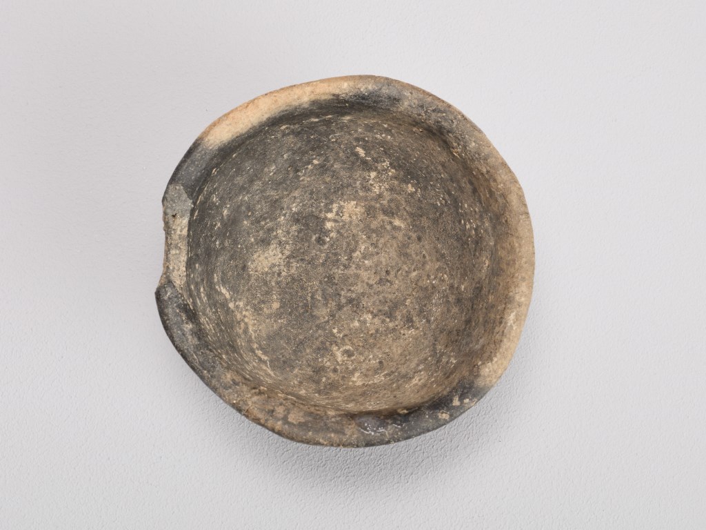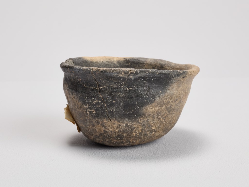 Vase modelé à la main, déformé, en terre cuite brune lissée à parois épaisses. Le fond est plat, la lèvre éversée irrégulière. Coup de feu localisé au niveau de la lèvre et du haut de la panse [Charpy, Lambot, Poulain, 2021]